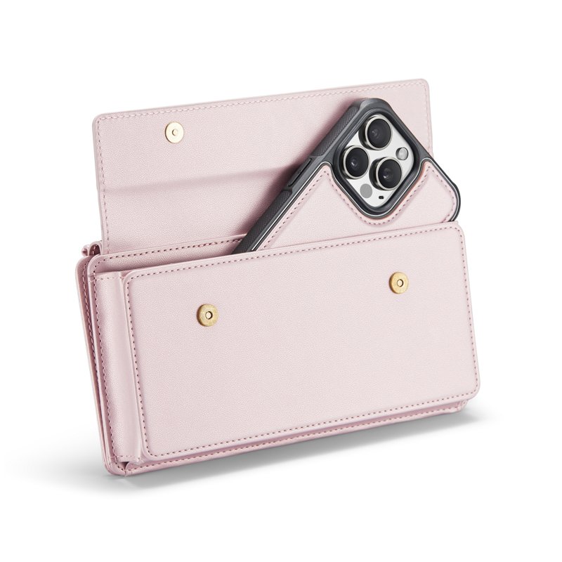 - Stor kapacitet: Rymmer telefon, nycklar, läppstift, kontanter och småsaker.