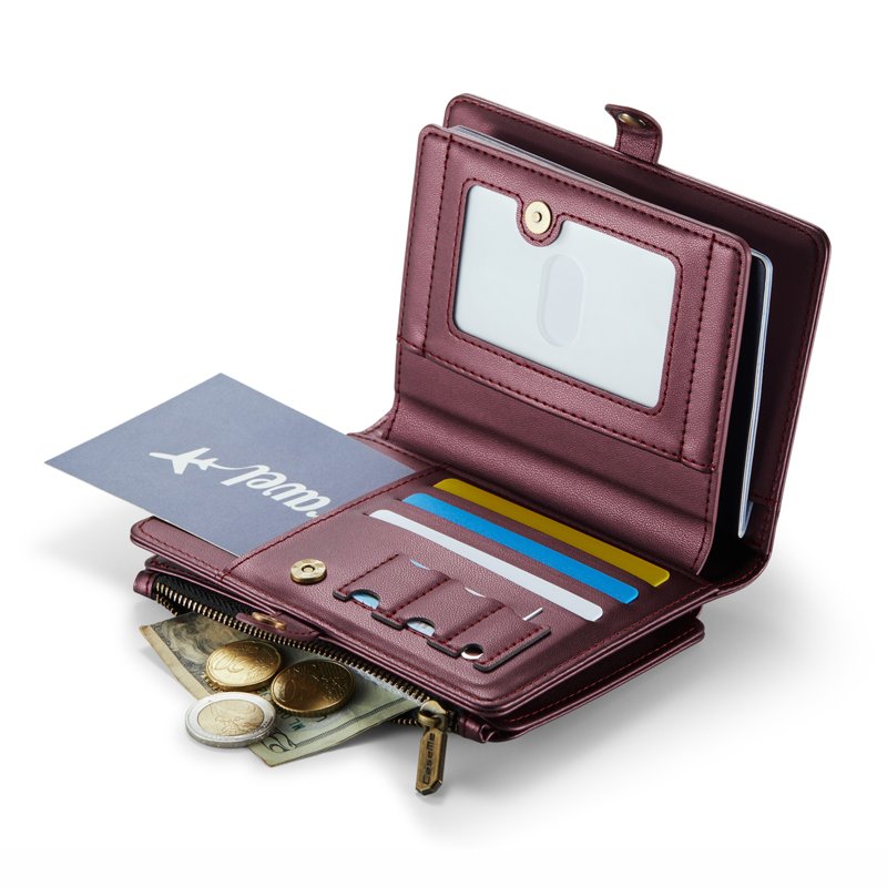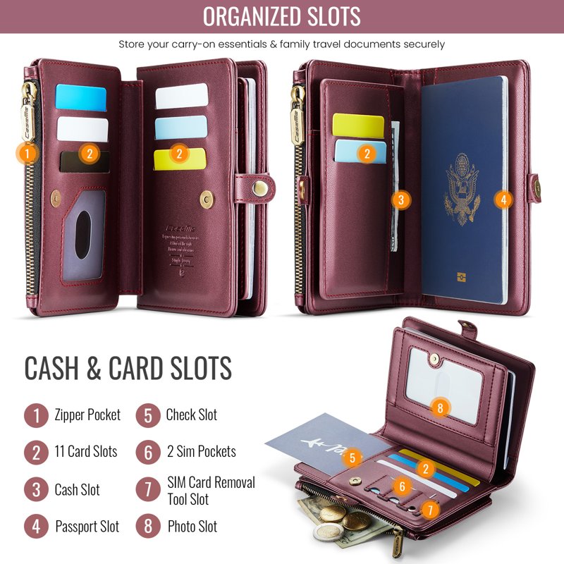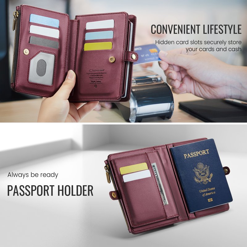 - Multifunktionell design: Rymmer 1 pass, 1 boardingkort, 11 kort, 1 sedelfack, 1 ficka med dragkedja, 1 fotofack och 2 SIM-kortsfack.