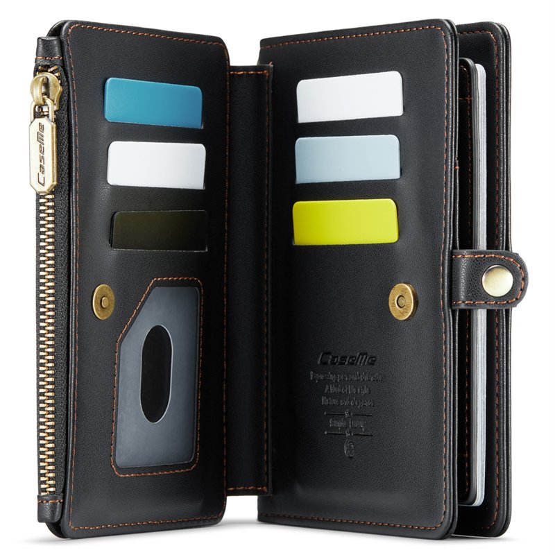 - Multifunktionell Design: Rymmer 1 pass, 1 boardingkort, 11 kort, 1 sedelrum, 1 ficka med dragkedja, 1 fotofack och 2 SIM-kortsplatser.