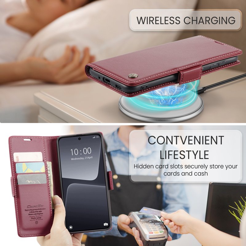 Denna plånboksfodral kombinerar elegans med funktionalitet. Tillverkat av högkvalitativt PU-läder och TPU, erbjuder det fullständigt skydd för din telefon. Med smarta funktioner som kortfack och RFID-skydd, gör det din vardag enklare och säkrare.