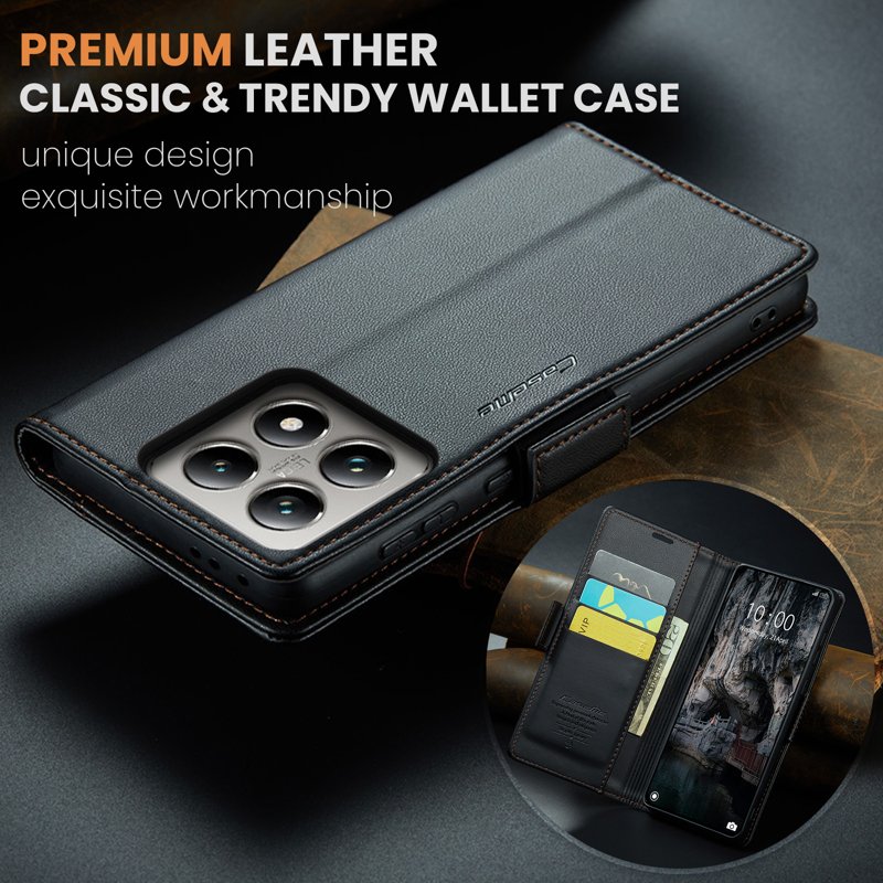 CASEME Xiaomi 14T Pro Läderfodral RFID Skydd 3 Kort Svart