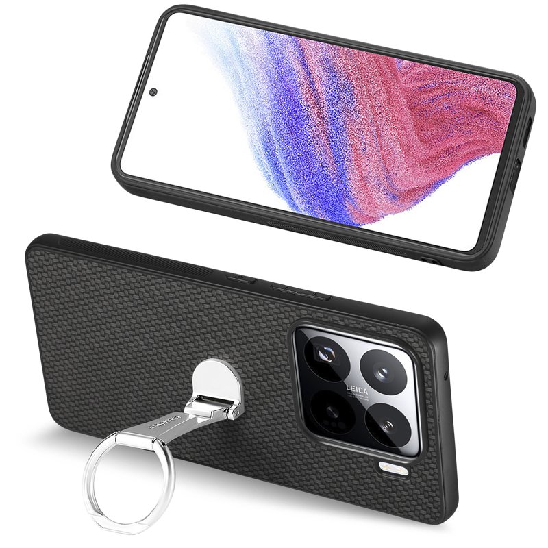 CASENEO C1-19 Xiaomi 15 Skal Fällbart Ställ Läder Kolfiber Svart