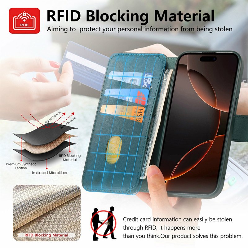 - RFID-blockering: Skyddar dina kort från obehörig skanning och stöld, vilket säkerställer din personliga integritet.