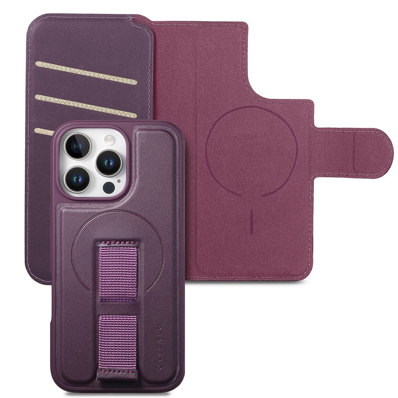 CASENEO iPhone 16 Pro Fodral Magnetiskt RFID Blocker Äkta Läder - Lila
