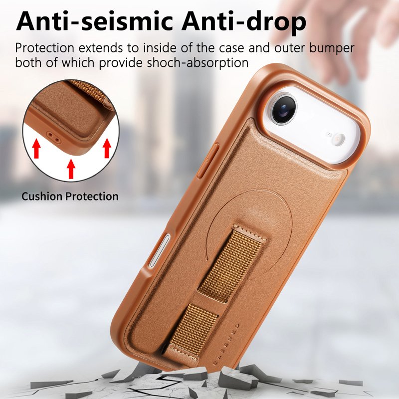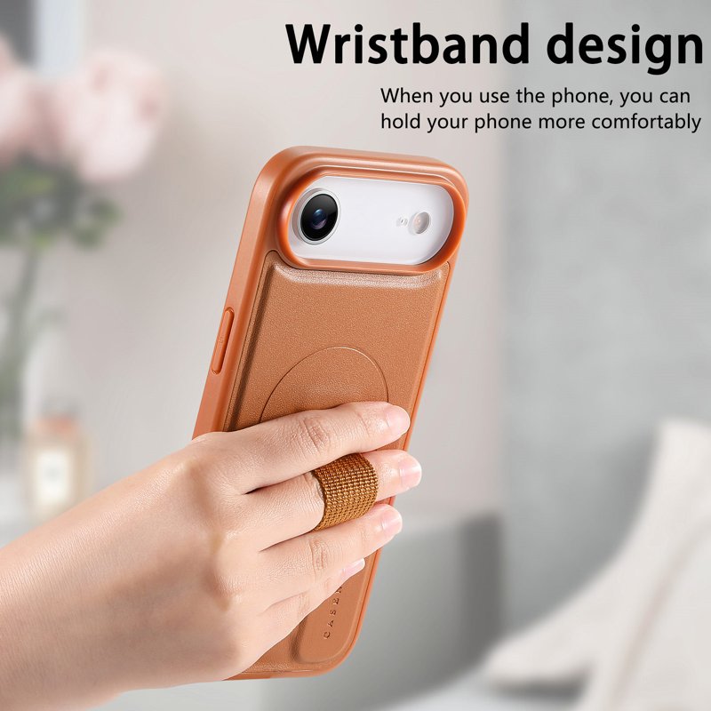 CASENEO iPhone Air Magnetiskt Fodral Handledsrem PU Läder Brun