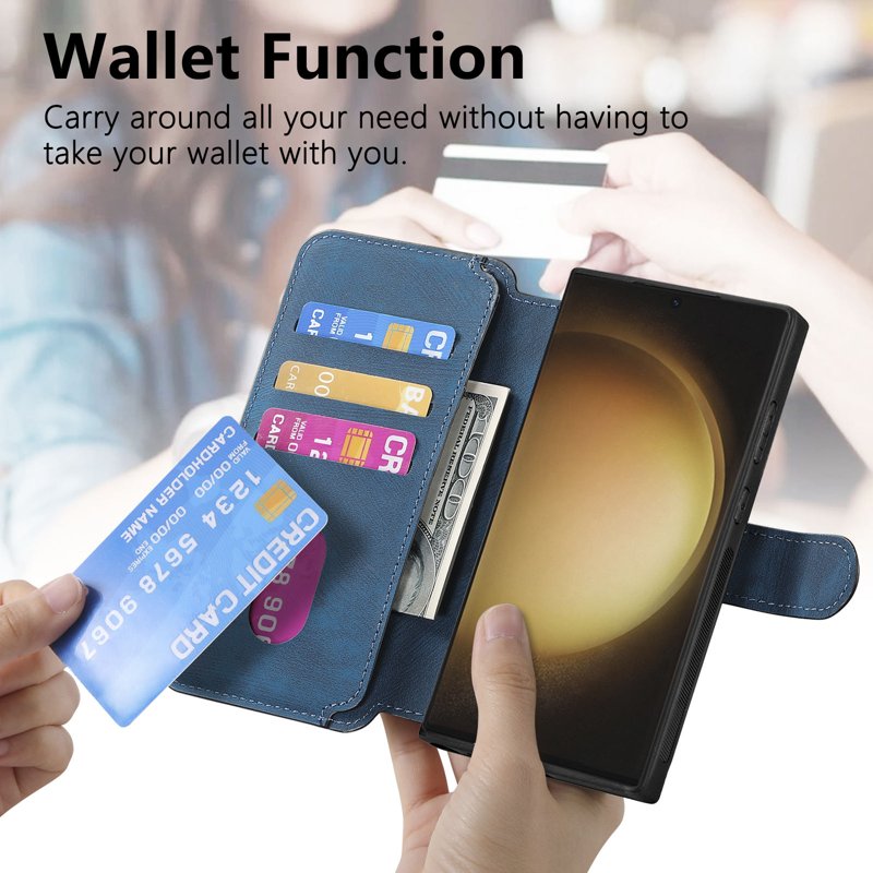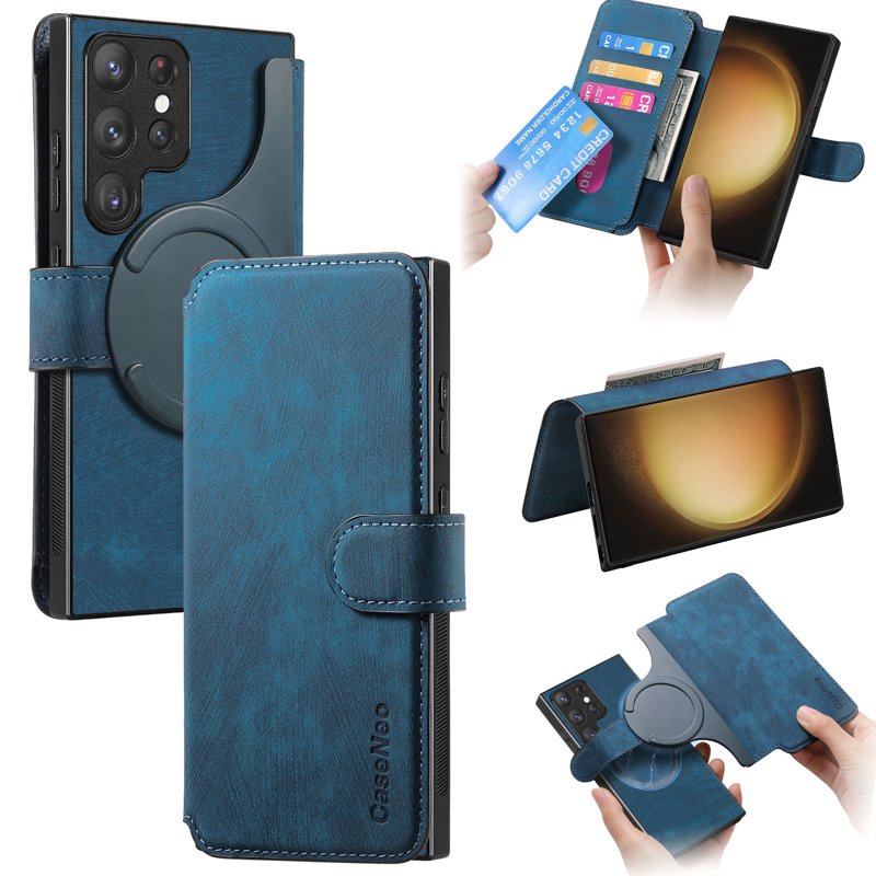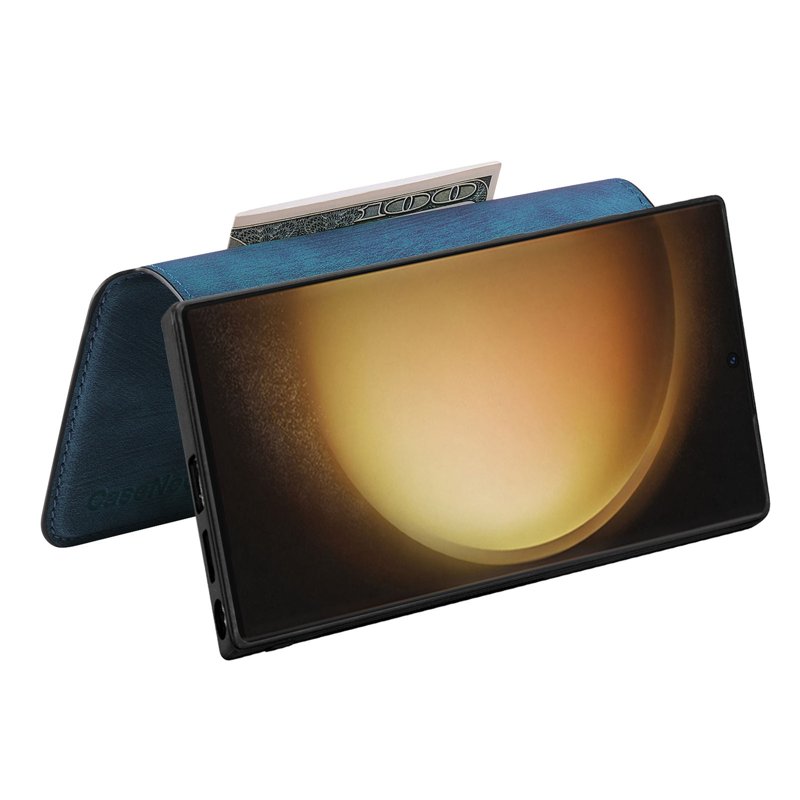CASENEO Samsung Galaxy S23 Ultra fodral i äkta läder kombinerar stil och funktionalitet. Det mörkblå fodralet är designat för att skydda din telefon samtidigt som det erbjuder praktiska lösningar för din vardag. Med flera smarta funktioner är detta fodral det perfekta valet för den moderna användaren.