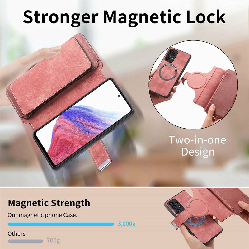 • Avtagbar Design: Den avtagbara magnetiska delen gör det enkelt att ta bort plånboksdelen när den inte behövs.