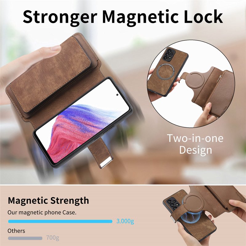 - Avtagbar Design: Den avtagbara magnetiska delen gör det lättare att bära telefonen när plånboksdelen inte behövs.