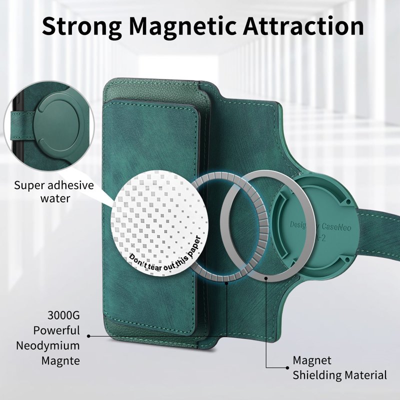 - Flera Kortfack: Rymmer dina viktigaste kort och kontanter, perfekt som plånboksersättning.