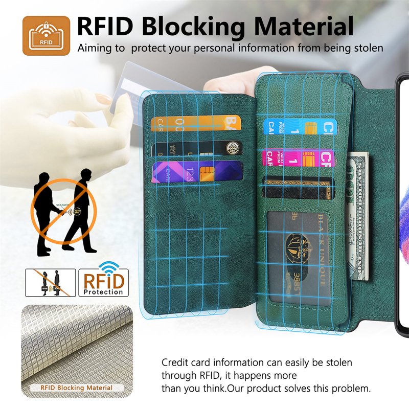 - RFID-blockering: Skyddar dina kort från obehöriga skanningar och håller din information privat.