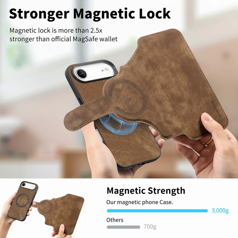 - Stark magnetisk attraktion – Utrustad med en kraftfull 3000G neodymmagnet för säker fästning av plånboken.