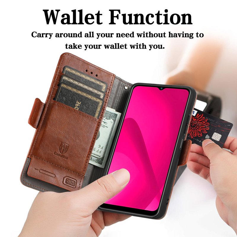 - Funktionell Plånbok: Innehåller kortfack och kontantfack, samt förvaring för SIM-kort och ejector pin.