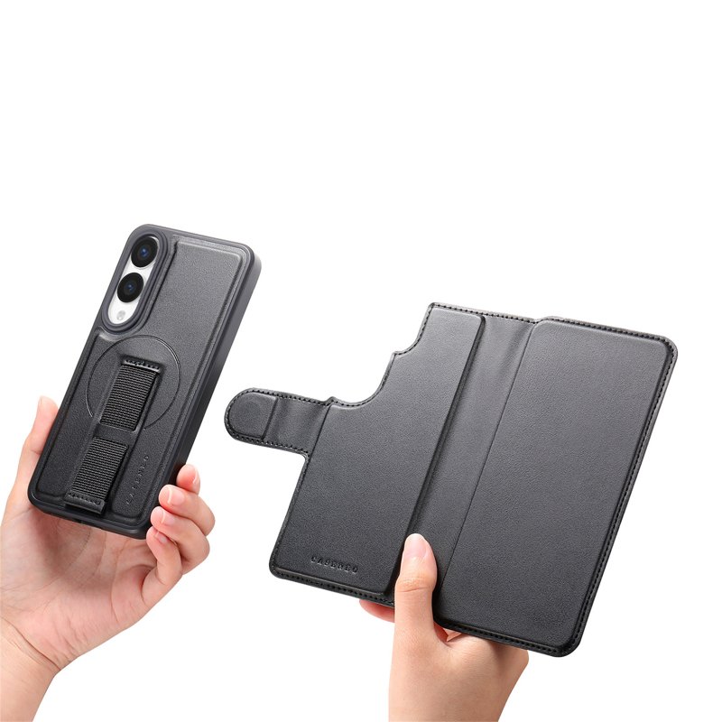 - Magnetisk avtagbar design: Tre kortfack och en sedelplats för kreditkort, ID och kontanter. Fodralet fungerar även som ett praktiskt stativ för handsfree-visning.