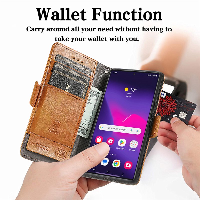 CASENEO Samsung Galaxy S25 Ultra Skal i PU läder är det perfekta valet för den stilmedvetna användaren. Med sin eleganta design och funktionella egenskaper skyddar det din telefon samtidigt som det erbjuder praktiska lösningar för din vardag. Det är både hållbart och snyggt, vilket gör det idealiskt för både arbete och fritid.