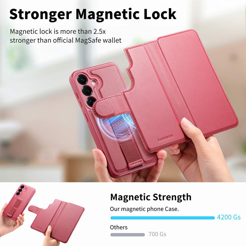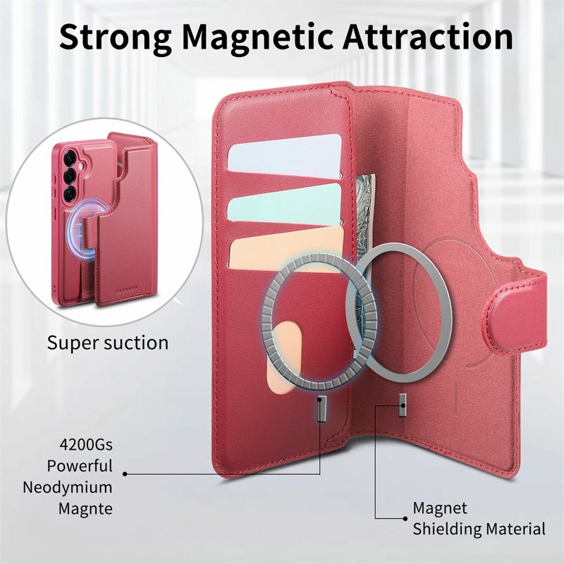 - Magnetisk Avtagbar Design: Tre kortfack och en sedelplats för kreditkort och kontanter. Fodralet fungerar även som ett praktiskt stativ för handsfree-visning.