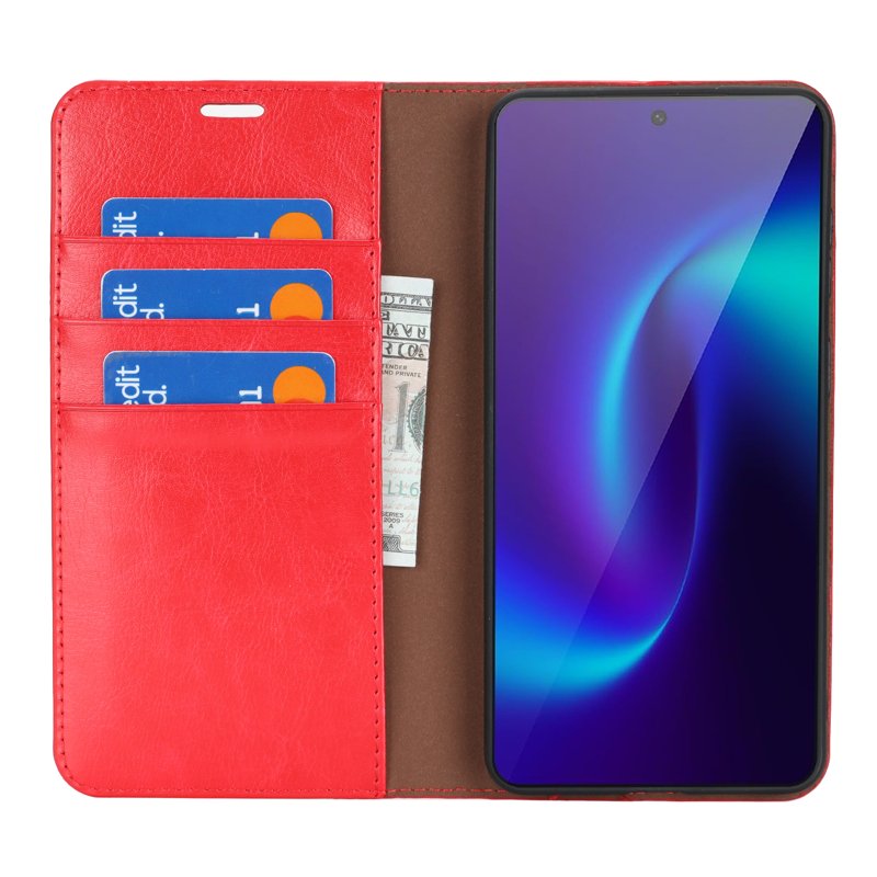 Skydda din Samsung Galaxy S26 Edge med detta stiliga Crazy Horse Texture Split Leather Wallet Phone Cover i röd färg. Denna plånboksfodral kombinerar funktionalitet med elegans. Med flera kortfack och en justerbar ställning är detta fodral perfekt för både arbete och fritid.