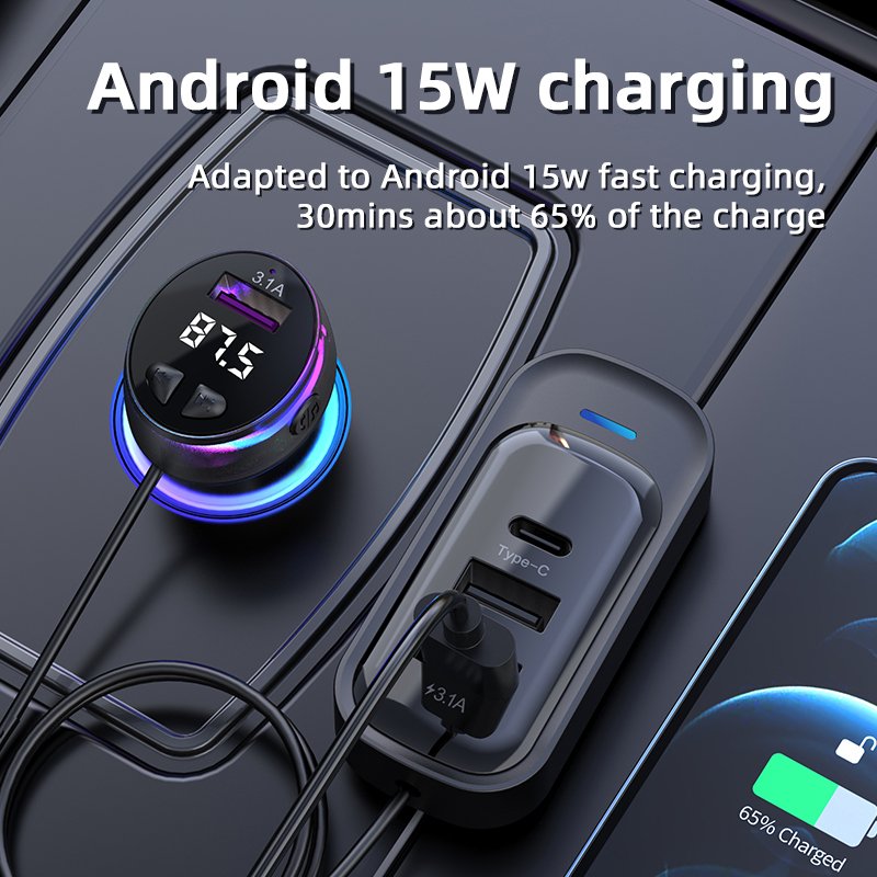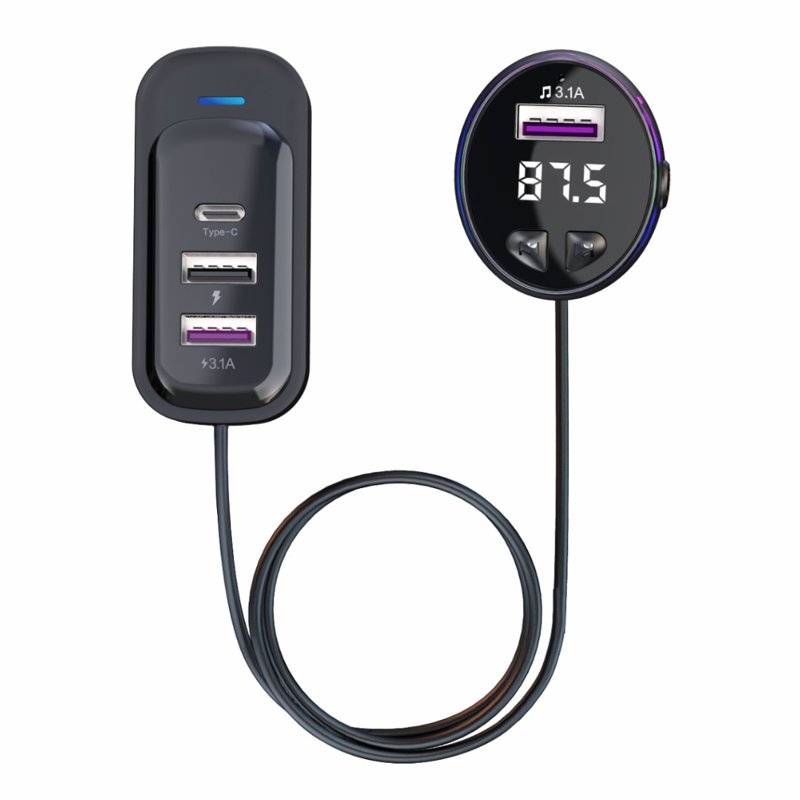 CS8 Baksätes Snabbladdare Bluetooth-kompatibel MP3 FM Sändare Multi-Port