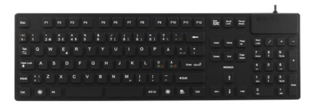• Ett speciellt utformat industriellt tangentbord, robust och vattentätt, tillverkat av silikon