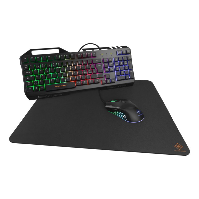 Deltaco 3-In-1 Gaming Gear Kit, RGB-tangentbord, mus, musmatta, Svart