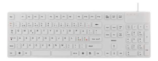 • Ett speciellt utformat industriellt tangentbord, robust och vattentätt, tillverkat av silikon