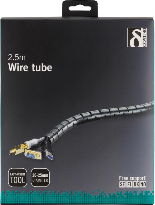 DELTACO Kabelslukare i nylon, 25mm diameter, verktyg ingår, 2,5m, svart