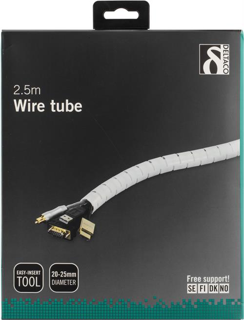 DELTACO Kabelslukare i nylon, 25mm diameter, verktyg ingår, 2,5m, vit