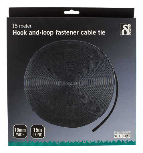 DELTACO kardborrband på rulle, bredd 10mm, 15m, svart