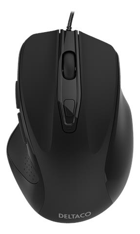 DELTACO trådbunden tyst mus för kontoret, ergonomisk form, gummerade sidogrepp, 3200 DPI, 6 knappar, svart