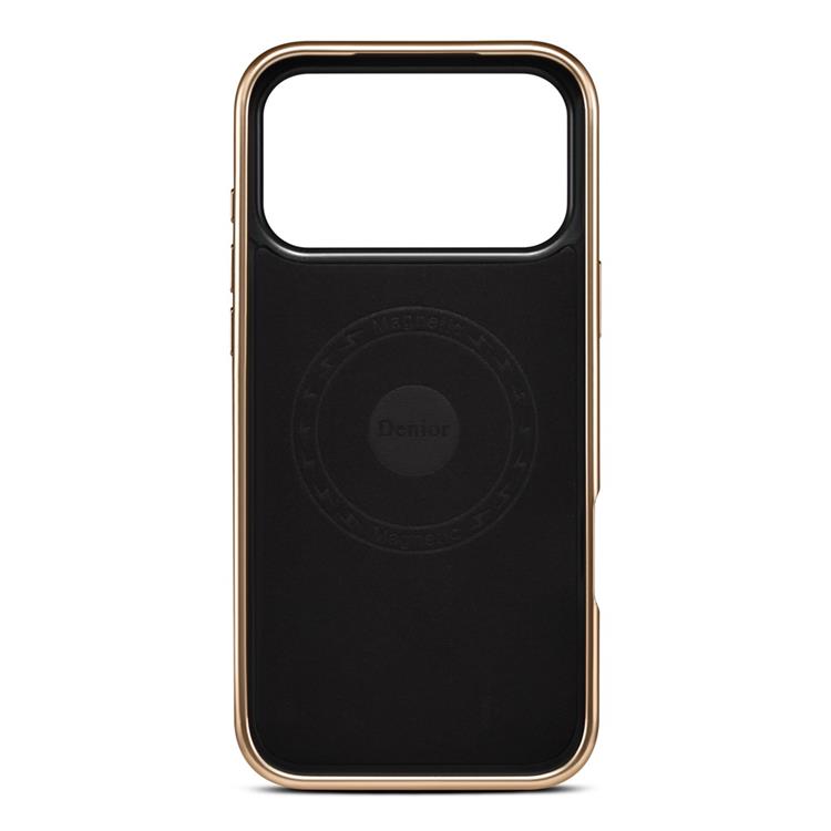 DENIOR iPhone 17 Pro Max Mobilskal MagSafe A25+1 Kickstand Electroplating Äkta koLäder - Röd