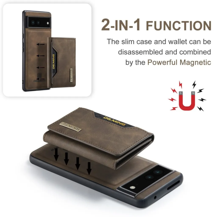 DG.MING Google Pixel 7 Plånboksfodral M2 2IN1 - Mörkbrun