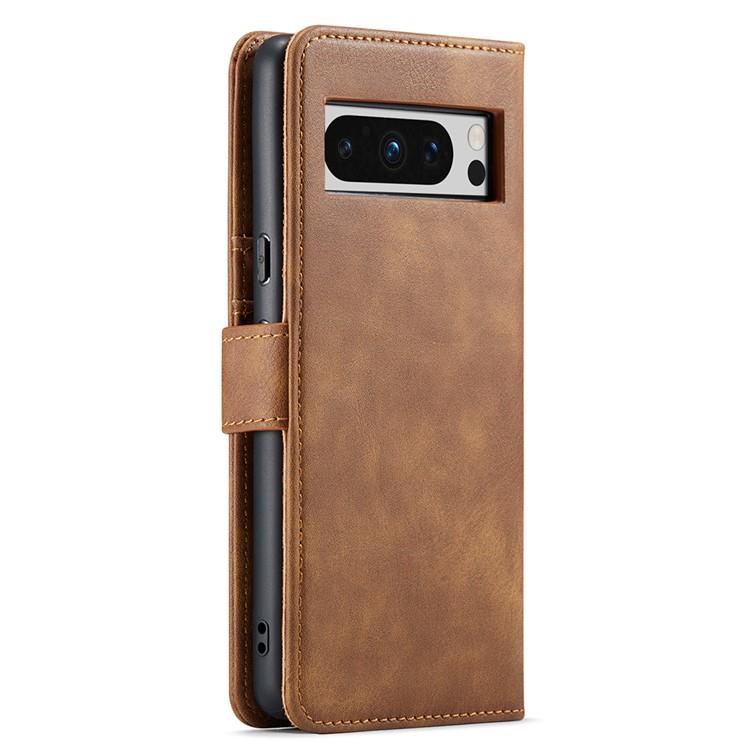 DG.MING Google Pixel 8 Pro Plånboksfodral Äkta Läder 2-in-1 Detachable Magnetic Anti-Scratch Stativ - Brun