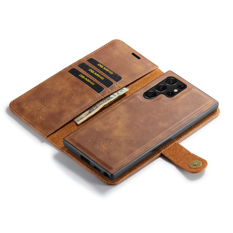 Handla denna produkt DG.MING Galaxy S23 Ultra Fodral i Delbart Magnetiskt Läder - Brun