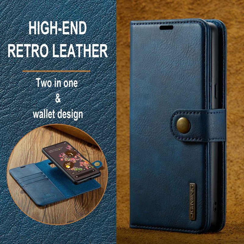 Detta 2-i-1 läderfodral kombinerar stil och funktionalitet. Med en delad läderplånbok och en avtagbar baksida i läderbelagt PC-material, erbjuder det både skydd och praktiska lösningar för din smartphone. Perfekt för den moderna användaren som värdesätter både design och användbarhet.