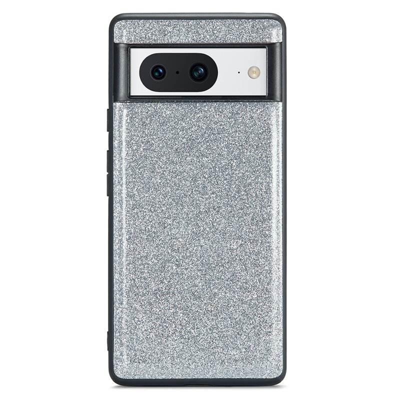DG.MING Google Pixel 8 Skal Glitter PU Läder+PC+TPU Silver