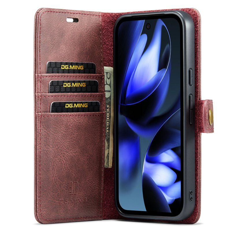DG.MING Google Pixel 9a Skal Delbart Läderfodral - Röd