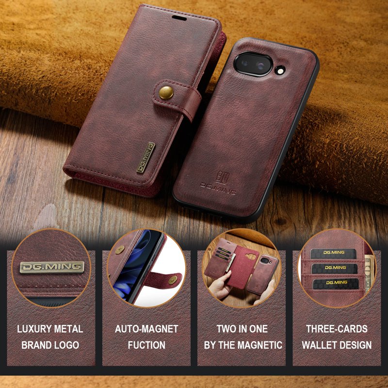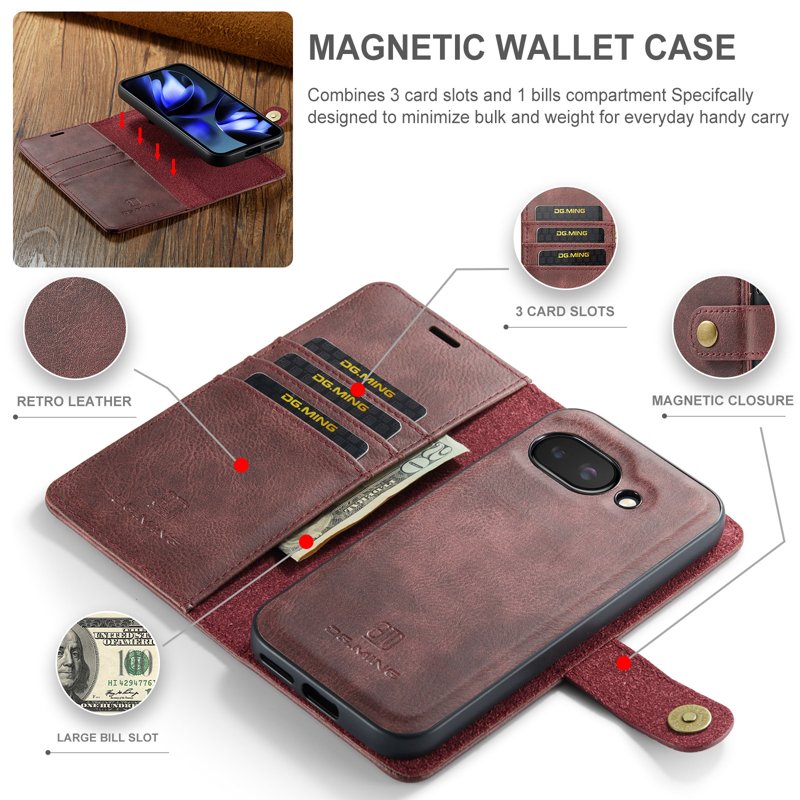 Handla denna produkt DG.MING Google Pixel 9a Skal Delbart Läderfodral - Röd