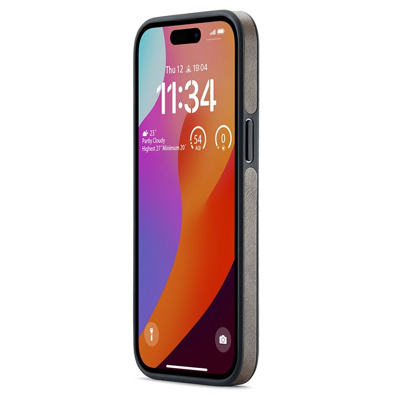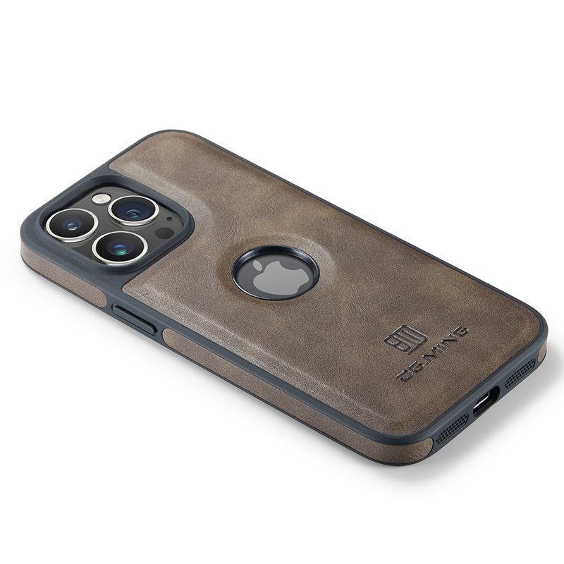 DG.MING iPhone 15 Skal Logo View Anti-Drop PU Läder - Kaffe