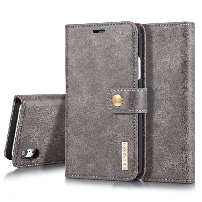 Handla denna produkt DG.MING iPhone XR Fodral i Split Läder med Ställfunktion - Grå