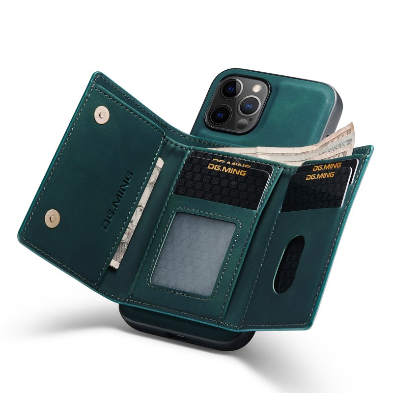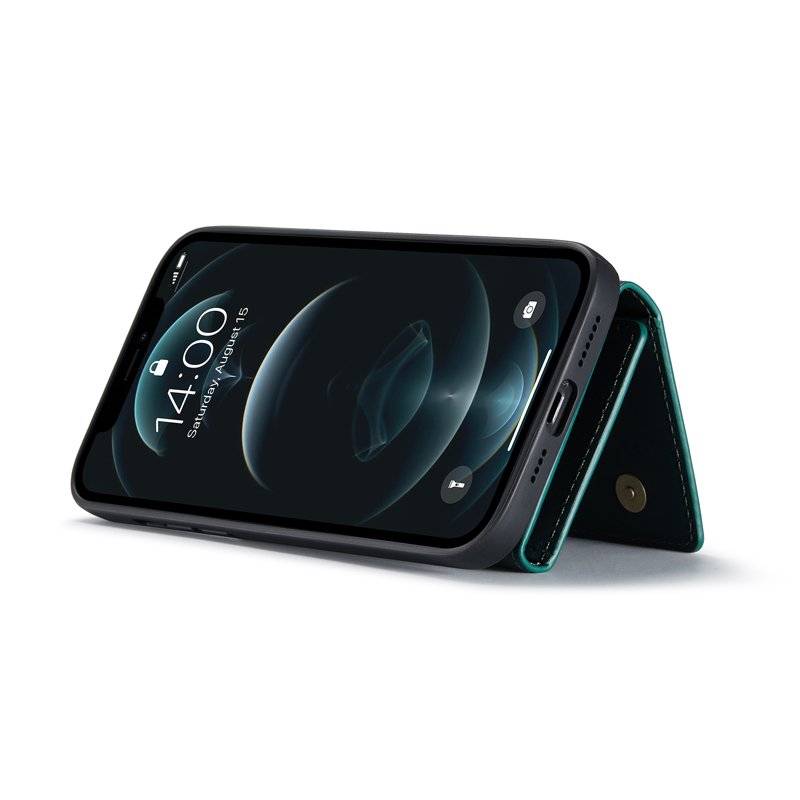 Detta fodral kombinerar stil och funktionalitet med sin två-i-ett-design. Det är en läderplånbok som enkelt fästs med stark magnetism. Fodralet är tillverkat av TPU och PC, belagt med premium PU-läder. Det är både elegant och hållbart. Trådlös laddning påverkas inte av fodralet.