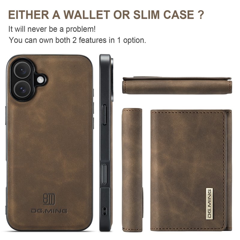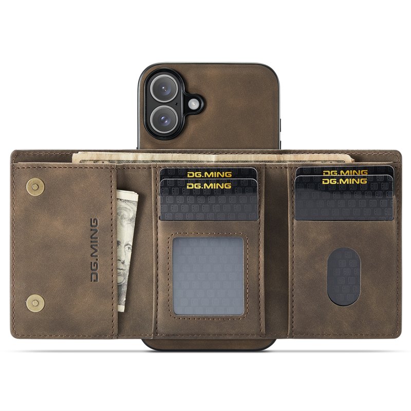 DG.MING M1 Series iPhone 16 Skal med Kickstand och Plånbok - Coffee