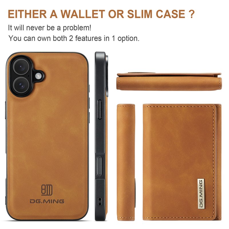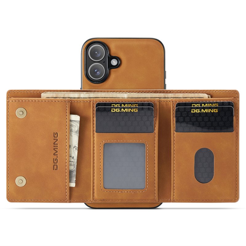 DG.MING M1 Series iPhone 16 Skal med Ställning och Plånbok - Brun