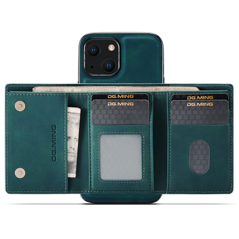 DG.MING M1 Series Magnetiskt Plånboksfodral iPhone 15 Plus Grön