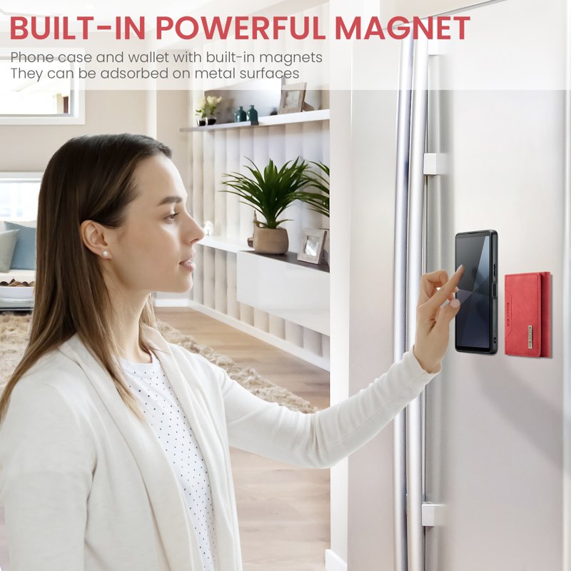 Detta plånboksfodral kombinerar stil och funktionalitet. Tillverkat av TPU och PC, med en yta av högkvalitativ PU-läder. Det erbjuder både hållbarhet och en elegant look. Med separerbara delar får du flexibilitet i hur du bär med dig dina tillhörigheter.
