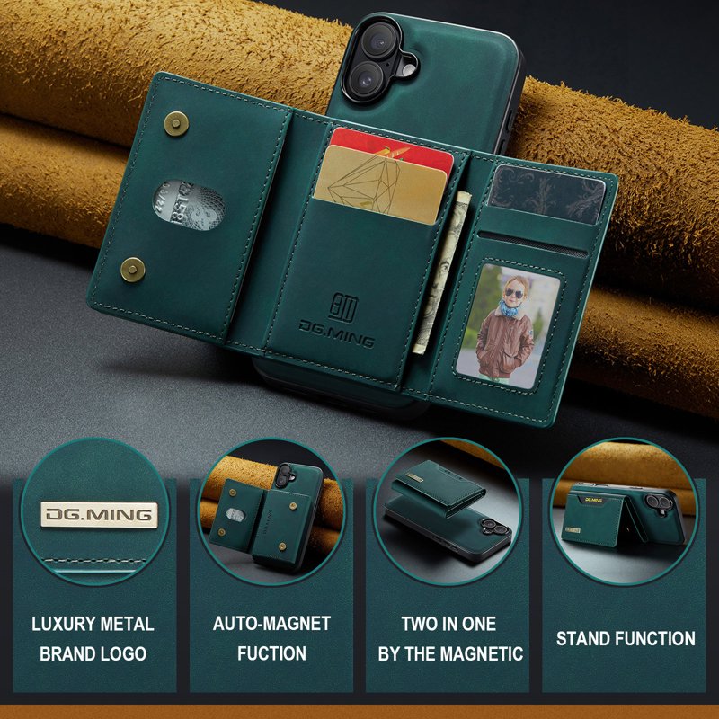 DG.MING M2 Series iPhone 16 Skal PU+PC+TPU Fodral Grön
