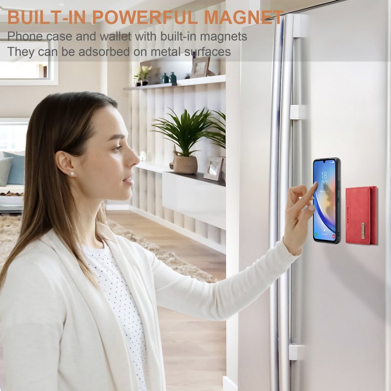 Detta plånboksfodral kombinerar stil och funktionalitet. Tillverkat av TPU och PC med en högkvalitativ PU-läderbeläggning, erbjuder det både hållbarhet och ett elegant utseende. Med separerbara delar får du flexibilitet i hur du bär med dig dina värdesaker.