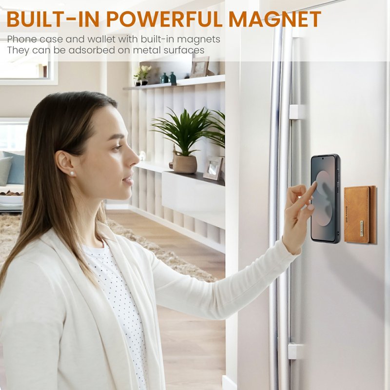 Denna premium plånbok och mobilskal är designad för att kombinera stil och funktionalitet. Tillverkad av TPU och PC, med en högkvalitativ PU-läderbeläggning, erbjuder den både hållbarhet och en elegant look. Den separerbara designen ger dig frihet att använda plånboken och skalet var för sig.