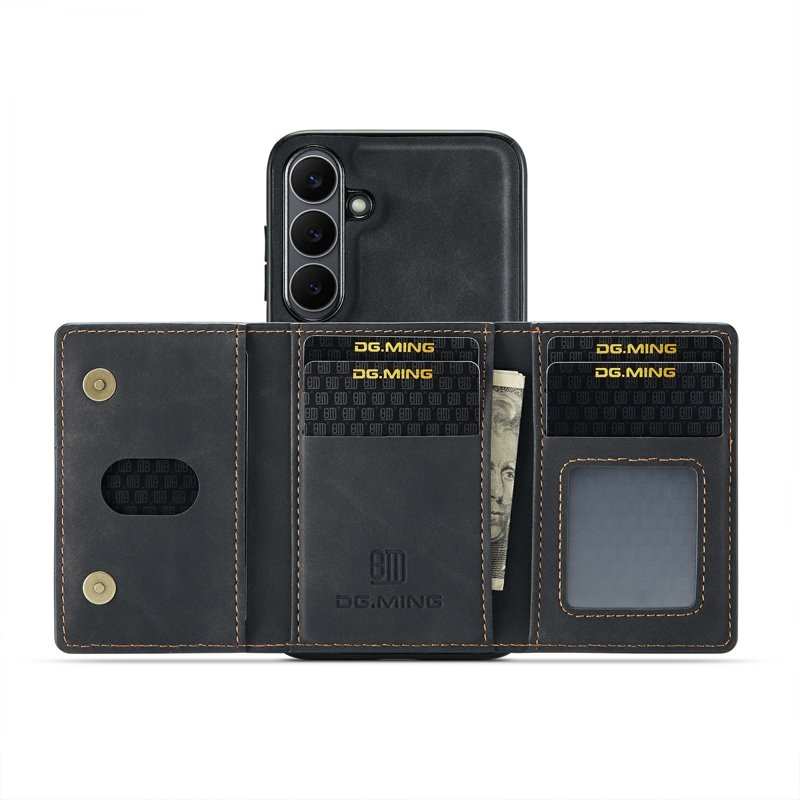 - Säker stängning: Utrustad med en metallmagnetknäppning som håller kort och kontanter på plats.