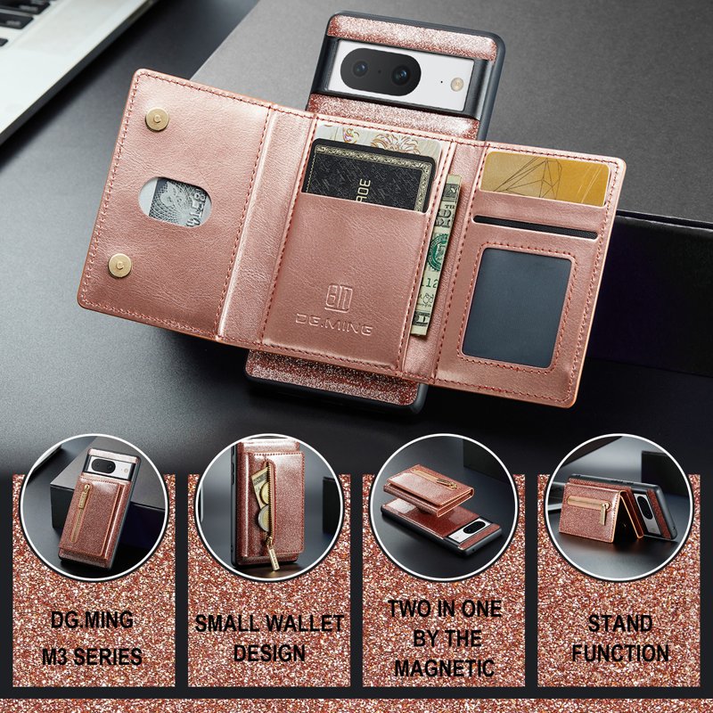 Handla denna produkt DG.MING M3 Series Konstläder Plånboksfodral för Google Pixel 8 Roséguld