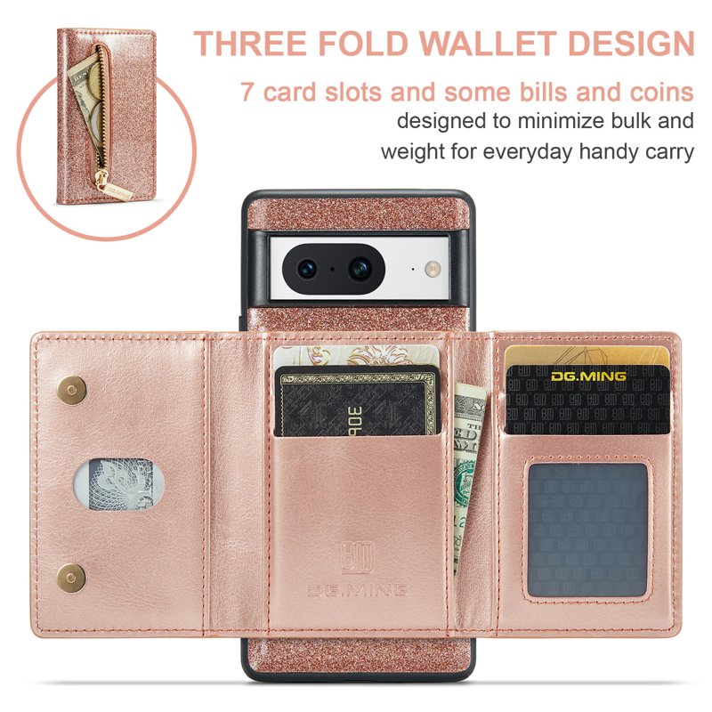 DG.MING M3 Series Konstläder Plånboksfodral för Google Pixel 8 Roséguld