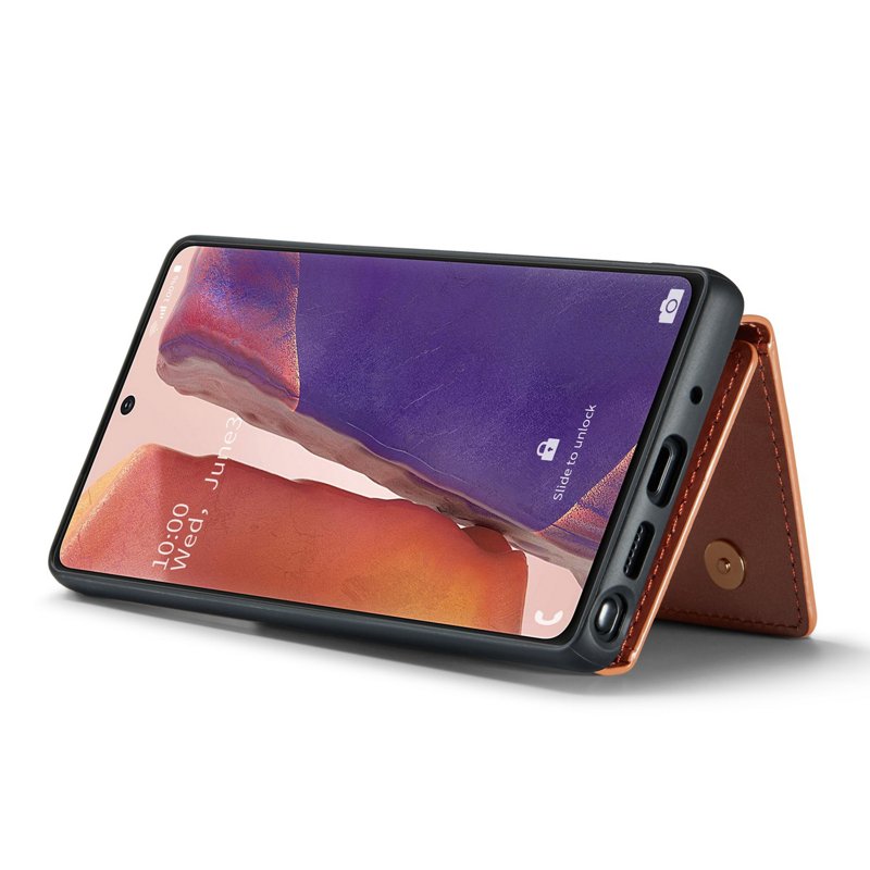 - Två-i-ett Design - Kombinerar en elegant läderplånbok med ett hybridtelefonfodral för ökad funktionalitet.